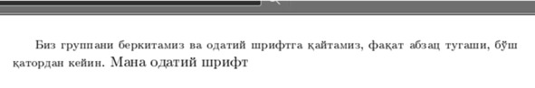 ва одатий шрифтга қайтамиз, фақат абзац тугаши,