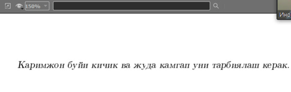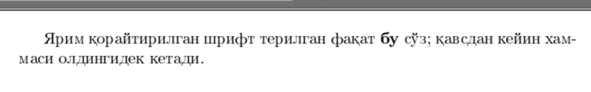 Yarim qoraytirilgan shrift bilan faqat «бу» so‘zi yozilib, undan keyingilari joriy shrif bilan yozilgan.