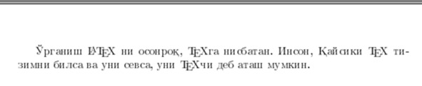 \usepackage [T2A] {fontenc} %% shrifni ko’chirissiz qo’shish