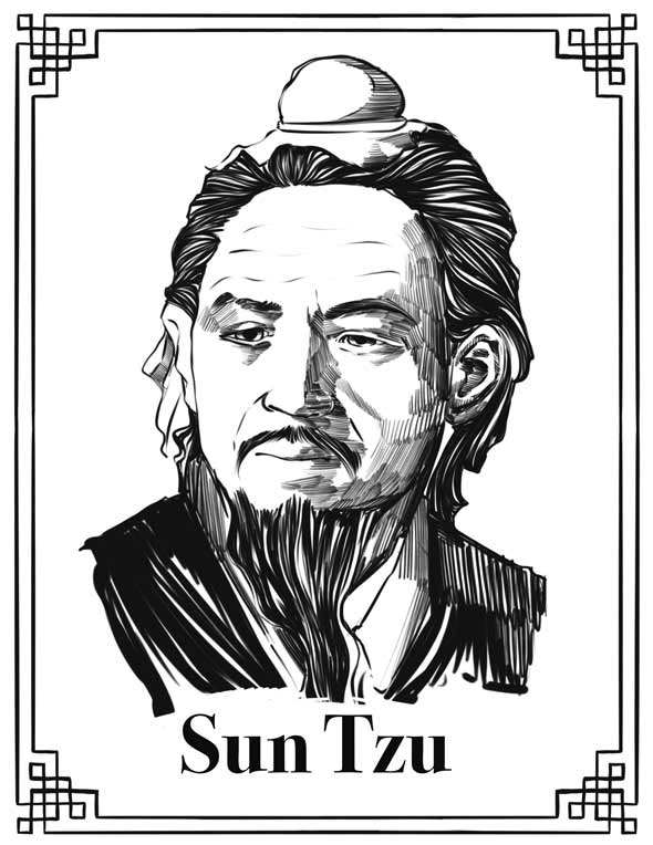 Війна – це шлях обману. Коли можеш – вдавай, що не можеш; використовуєш – вдавай, що не використовуєш; коли ти близько, вдавай, що далеко; коли ти далеко вдавай, що близько. Того, хто жадібний – спокуси вигодою; того, у кого справи в безладі – захопи; з тим, хто повністю підготувався, будь на сторожі; від сильного ухились; запального виведи з себе; з зарозумілим поводься так, щоб його гордість збільшилася; того, хто відпочиває – стоми; тих, хто дружний – розділи; тих, хто не готовий – атакуй, нападаючи звідки не чекають. Такий полководець повинен перемогти, але не можна заздалегідь передбачити, який із цих способів, йому доведеться застосувати.