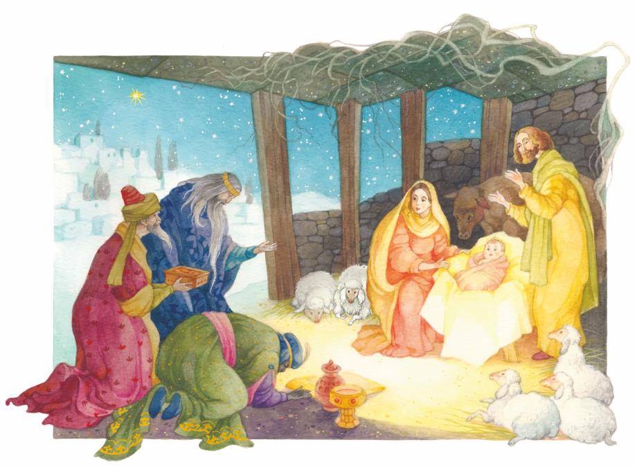 Наступила чудесная звёздная ночь, и у Пресвятой Девы родился Младенец Иисус, Сын Божий, Спаситель мира. Счастливая Мать спеленала Дитя и положила в ясли – кормушку для скота.