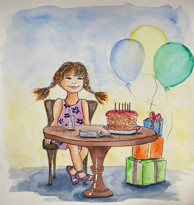 Вы знаете, что у меняСкоро день рождения?!Хочу подарки получить.Ну нет уже терпения!Платье новое наденуЯ в розовый цветочек.Подарочки в коробкахПоставлю я в рядочек.Тортик непременноГостей всех ожидает.Мы будем веселиться,И час вот-вот настанет!Родители мне обещалиКуколок и книжки.А что друзья подарят,Девчонки и мальчишки?!