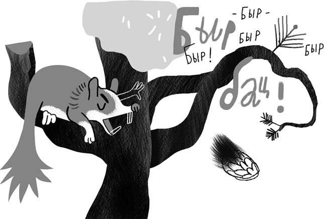 Вуха, обиженная, что на неё не обращают внимания, кинула в Анзу особенно увесистую шишку. Промахнулась. Шишка ударилась об землю…