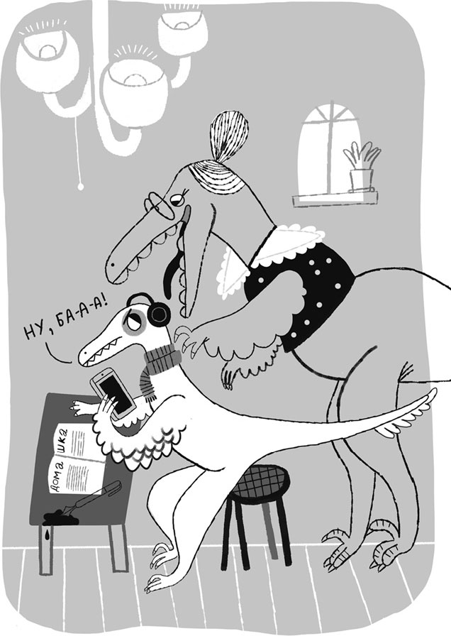 – Нет, моя семья порядочная и неядовитая, – сказал юный динозавр. – Только бабушка иногда кусалась, когда мы не хотели уроки делать. Но яд у неё был слабенький, от него кожа слегка чесалась.