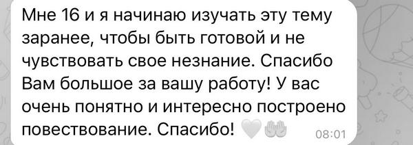 Надеюсь, что из этой книги ты получишь ответы на свои вопросы. Если у тебя будут комментарии по ней, или ты захочешь рассказать свою историю родов, а может, и вообще доверить мне самое ценное – рождение своего малыша, – просто напиши мне! Я всегда на связи, 24/7 – от первой схватки до первого крика.