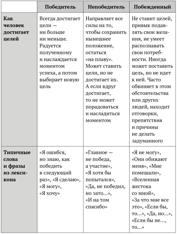 Непобедитель знает, что будет делать в случае неудачи – откажется от цели или скорректирует ее в стиле «не то, что я хотел, но тоже неплохо».