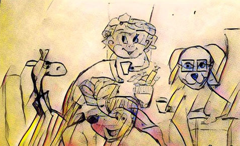 – Я ведь тоже землянин! С самого детства мечтал построить космический корабль. Все от меня отмахивались, слушать не хотели. А я не отчаивался, не вешал нос. Каждую ночь производил расчеты, разрабатывал схемы. И вот однажды познакомился со старым бульдогом, звали его Железный лоб. Он поддержал мою идею и приобщил товарищей, которые начали нам помогать. Наш корабль имел форму морской ракушки. Когда все было готово к полету и зажглись огни, Железный лоб всплакнул от счастья. Лететь со мной он не мог, здоровье его ухудшалось. Я предложил кому-нибудь из наших друзей присоединиться, но таких добровольцев не оказалось. Уже начал подниматься на корабль, как за мной увязался шаловливый щенок по кличке Чудик.