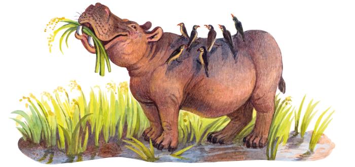 Всё шло бы хорошо, мои дети, если бы бегемот Хуго питался рыбой, подобно акулам, или жуками и бабочками, подобно тем чёрным сорокам, которые имеют обыкновение разъезжать верхом на слонах.
