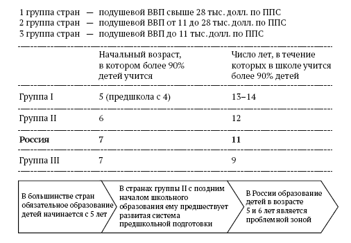 В развитых странах дети 4–5 лет уже полностью охвачены предшкольным или школьным образованием. Этот переход произошел более 30 лет назад. Именно задача преумножения человеческого капитала заставляет ведущие страны идти на указанные меры (рис. 1).