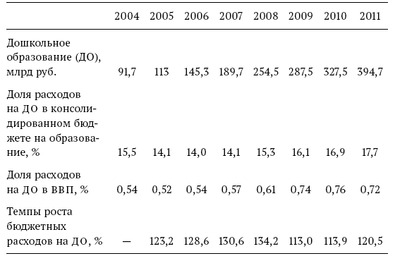 Таблица 2. Бюджетные расходы на дошкольное образование детей в 2004–2011 годах