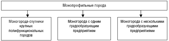 Таким образом, исходя из исторических оснований можно заключить, что структура моногородов в СССР, а затем в России стала представлять собой довольно сложный конгломерат городов, различных по численности (от городов типа Тольятти, Саяногорска, Костомукши до районных городов и поселков городского типа), по сложности производства и квалификации жителей (от Троицка и Обнинска до Шумихи и Острова), по возможностям сбыта продукции и конкурентоспособности производства, а также по социально-психологическим особенностям населения.