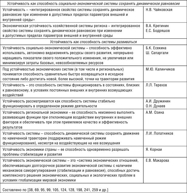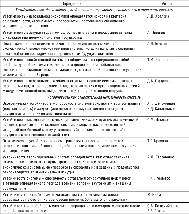 Таблица 1.2. Обобщение определений устойчивости социально-экономической системы