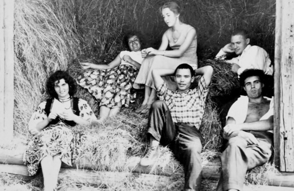 1959.07. Подмосковье. «Калинушка»: Светлана Солодченкова и Николай Преображенский, Вадим Авраменко, Анатолий Фельдман, Тамара Константинова, Валерий Рау, Андрей Фрейдин, Михаил Балашов