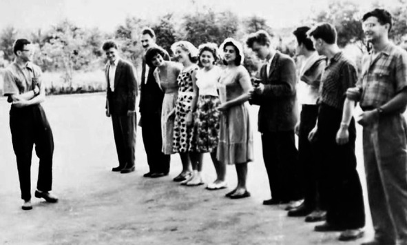 1959.07. Подмосковье. «Златы колечики»: Тамара Константинова (Иосиф Рабинович, Вадим Авраменко). На фото справа: это не лекция, а стихи о любви: Иосиф Рабинович