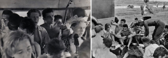 1959.07. Подмосковье. Берег Оки. Стоят: Игорь Коган, Феликс Ерешко. Сидят: Игорь Борисов, Николай Преображенский, Михаил Балашов, Михаил Размахнин, Рустэм Любовский, Вадим Авраменко, Валерий Рау, Анатолий Кузнецов, Лев Хямяляйнен, Иосиф Рабинович, лежит Андрей Фрейдин