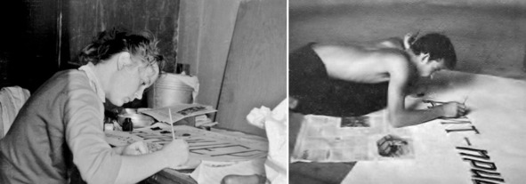 1961.02. Тамара Бычкова, Людмила Азбиевич, Неля Фастовец, Людмила Махнова. На фото справа: «Вперёд! Нас ждут!»