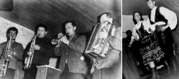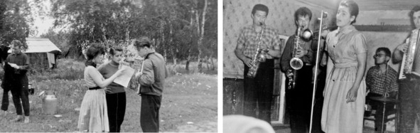 1961.07. Оркестр: Слава Солнышкин, Жора Иванов, Стас Зимин, Боб Федосов, Коля Кузнецов, Саша Кочкин, Гена Яковенко. На фото справа – русский танец: Слава Смирнов, Эмма Скляренко, Валерий Ириков, Таня Воскресенская
