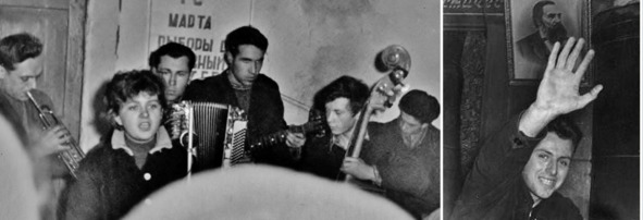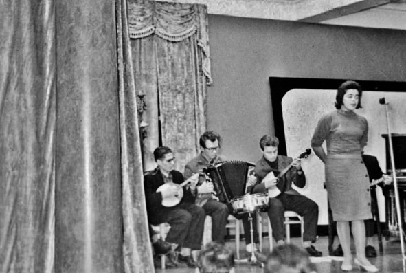 1961.11. Николай Кузнецов, Света Солодченкова. Справа – оркестр: Слава Солнышкин, Жора Иванов, Боб Федосов