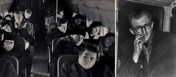 1962.02. Казахстан. Дорожная жизнь. В самолёте среди пассажиров: Л. Перецман, В. Смирнов, Ж. Морозов, Ю. Тратас, В. Любченко, Э. Скляренко, Г. Иванов. Справа – руководитель похода Геннадий Новиков