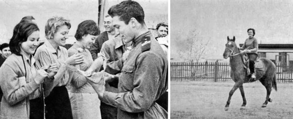 1964.07. Таня Воскресенская с Лисьим хвостом. Справа – на заставе после концерта пограничная лошадка покатает только до конюшни