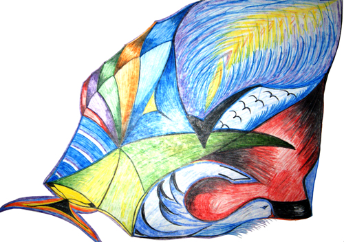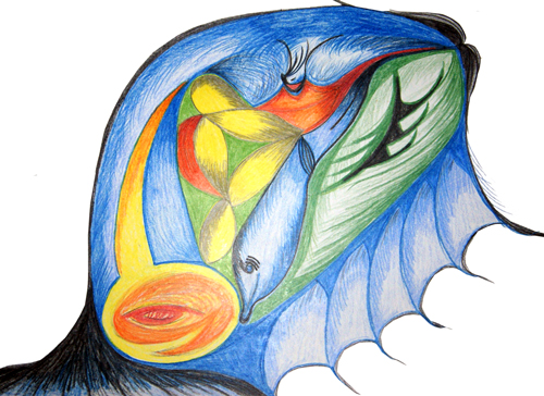 Первое, что удивило Дельфина, это гаммы цветов внутри кита. Они напоминали ему момент рождения самого себя. В жёлтом цвете он увидел теплоту, в красном цвете – трепет, в зелёном цвете – успокоение, а в фиолетовом цвете – правду.