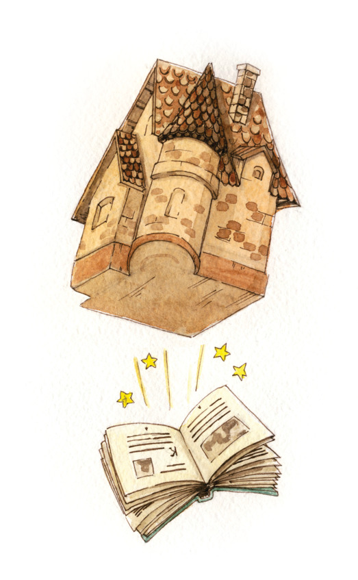 Он бежит впереди и машет своим пушистым хвостиком. Вдруг мы заметили лежащую на траве книгу. Я ее открыла, и из книги вылетел небольшой дом.