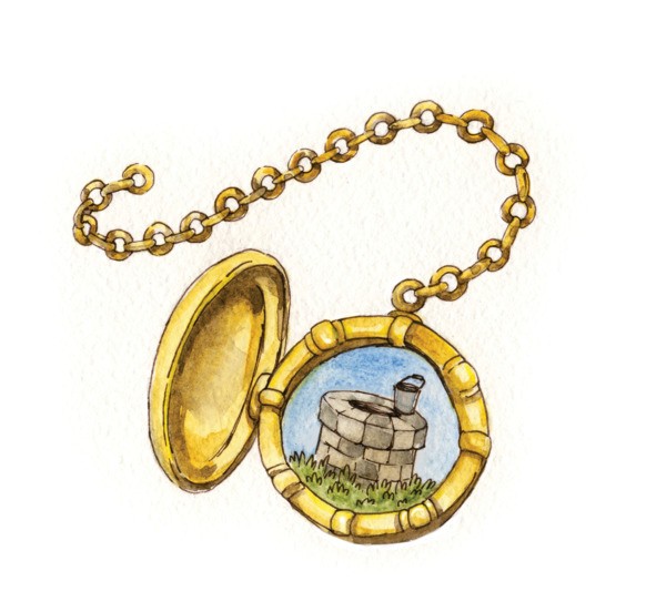Королева подарила Ирису медальон и сказала, что он может помочь нам в поисках. Ирис открыл медальон, и в круге, как в телевизоре, стали появляться картинки. Одна картинка сменялась другой, и вдруг будто кто-то ворвался между картинками и попросил о помощи. И сказал: «Ищите нас в заброшенном колодце».