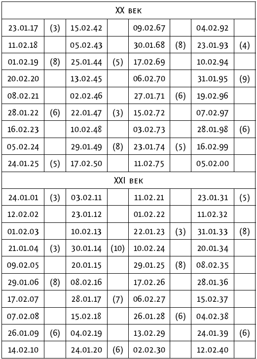Начало восточного лунного года в ХХ – ХХI веках