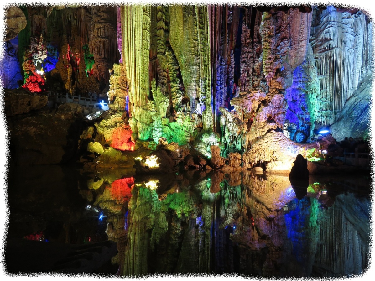 Пещерное озеро на картинке отражало натёчные драпировки, которые были подсвеченны синим, красным и зелёным светом. Фантастический вид заставил девочек отыскать на полке отца Пельмешки ещё одну книгу, где было множество фотографий пещер. Полистав несколько страниц, они заметили разнообразие ландшафтов и сказочность подземного царства. На поверхности земли такого мира они не встречали.