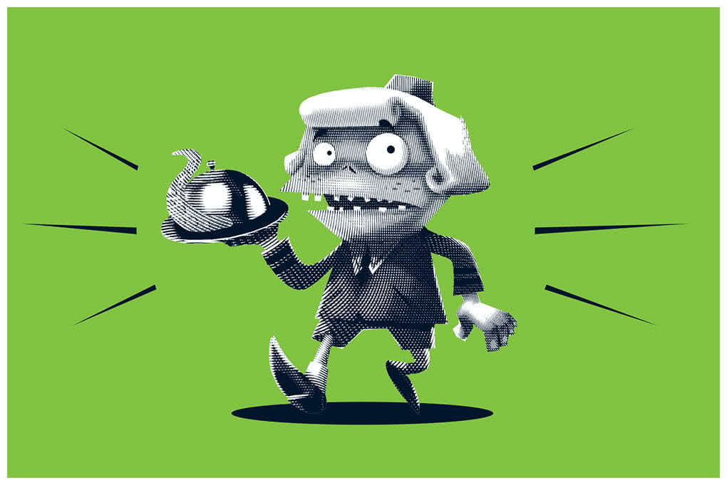 В команде Уоррена есть существо, подобного которому я никогда не встречал. Зовут его Скетчи, с виду это гигантское головоногое с множеством глаз и восемью щупальцами. При первой встрече я был напуган (работает Скетчи в кухне – подручным у повара).