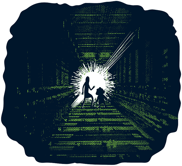 Петула кивнула. Оба они просунули пальцы в щель между дверьми лифта. Со стоном и скрипом две тяжелые панели разъехались, одна вверх, другая исчезла где-то внизу.