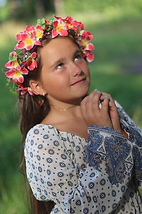 Наташа надела древний наряд и вышла на улицу. Среди берез маленькой девочкой в струящихся одеждах и венке из полевых цветов бегала фея. От счастья фея залилась звонким смехом и захлопала в ладоши.