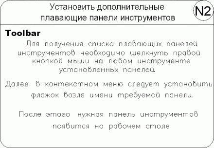 Панели инструментов могут быть плавающими (float) или закрепленными (dock), с фиксированным местоположением. Допускаются изменения размеров плавающих панелей, а также их перемещение по графическому полю (рис. 2.4). Плавающую панель можно сделать закрепленной, перетащив ее с помощью мыши за пределы графического поля. И наоборот, как только закрепленная панель попадает в область графического поля, она превращается в плавающую.