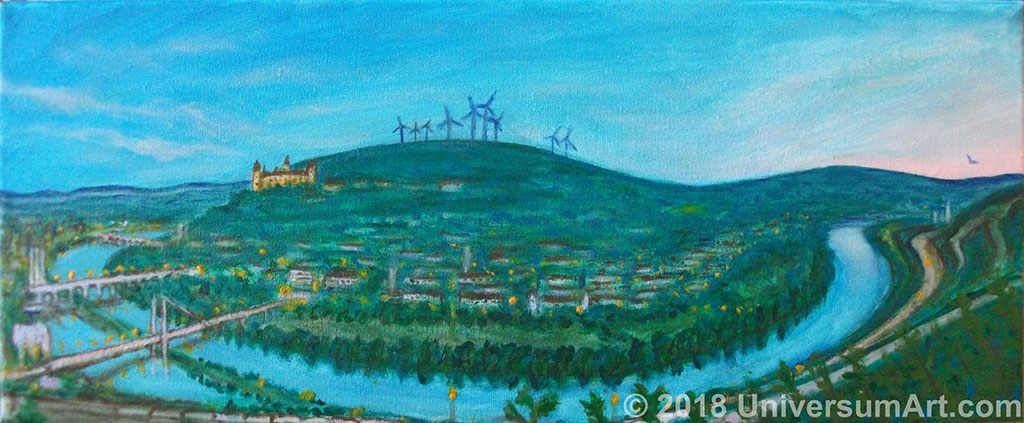 В неба взгляде – сердца тайные рывки:На закате, на закате – ветряки!Светопряди расплетают стебельки… —В Песнь, вращаясь, разжигают маяки!Дерзкой шаткостью негаданно-легки, —Сфер дыханьем – раскрылатив лепестки! —Ощущают, как прозрачны и близки —Невозвратности бродячие штрихи…Взмыв над гладью угасающей реки,В многогрядье туч – вонзая вер стежки, —Всем отчаянья раскатам вопреки! —В бездн включаются внезапные броски:Раскачавшись, проникают в сквозняки! —Грёз тончайших раздувая цветники!..Ветр – взвучавшись, распластавшись в гроз прыжки! —Превращают – в Свет, рождая огоньки!..Очищают вер неназванных ростки,Учащая тембров связь – в зари мазки…Всё вмещая: с дней начал – миров круги… —Излучаясь, трепеща как мотыльки!..Даль охватит, облетая, тень тоски?.. —На закате – расцветают ветряки!30.07.2018 г. (Вюрцбург)«Марс над Майном…»