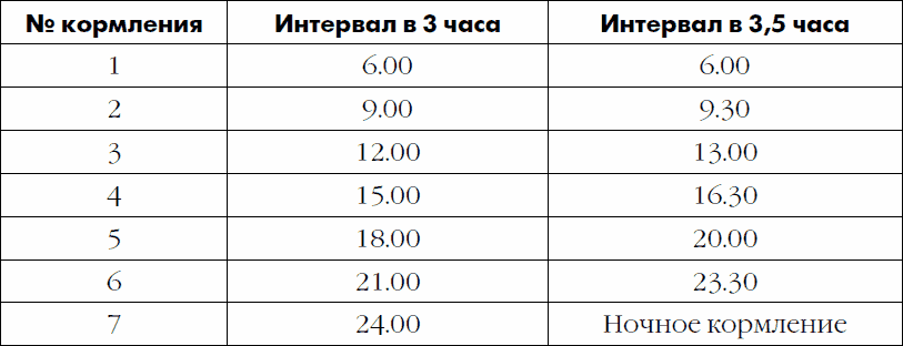 Есть врачи, которые рекомендуют кормить малышей через каждые 3 или 3,5 часа, что в среднем получается 6–7 раз в сутки с ночным перерывом в 5–6 часов. В качестве главного аргумента такого, скажем так, более строгого подхода специалисты приводят факт естественного физиологического ритма работы кишечника ребенка.