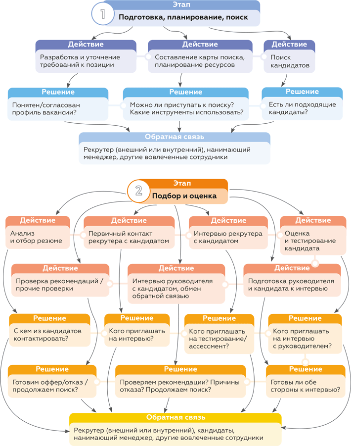 Технологию поиска и подбора персонала принято описывать в «шагах рекрутмента». В различных источниках вы встретите 17, 25, 30, 35 и более шагов. Однако для успеха важно не количество этапов, а их содержание и последовательность. Если четко соблюдать технологию, то обязательно получите результат. Если что-то идет не так, проанализируйте свои действия на каждом из этапов – и вы непременно обнаружите причину сбоя и найдете решение возникшей проблемы.