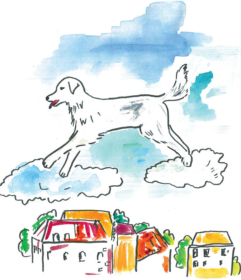Облака поднимали собаку высоко-высоко, и она радостно лаяла. А прохожие удивлялись, откуда этот лай, вертели головами, иногда даже смотрели вверх и замирали, увидев, какое красивое у нас небо.