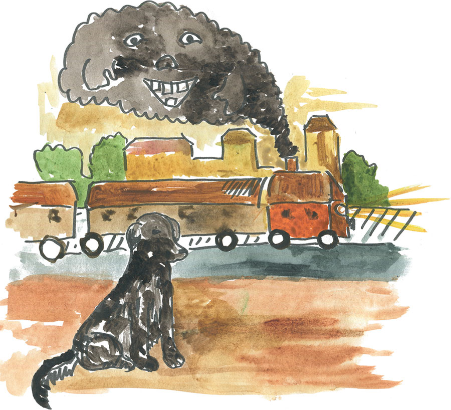 В депо они посмотрели на паровозы, вагоны, а потом собака куда-то убежала. На самом деле у ББС был хитрый план. Следуя ему, она быстренько окунулась в стоящую в депо бочку с чёрным мазутом. После чего, растрепав свой прекрасный теперь уже чёрный мех, ББС направилась к Вове.