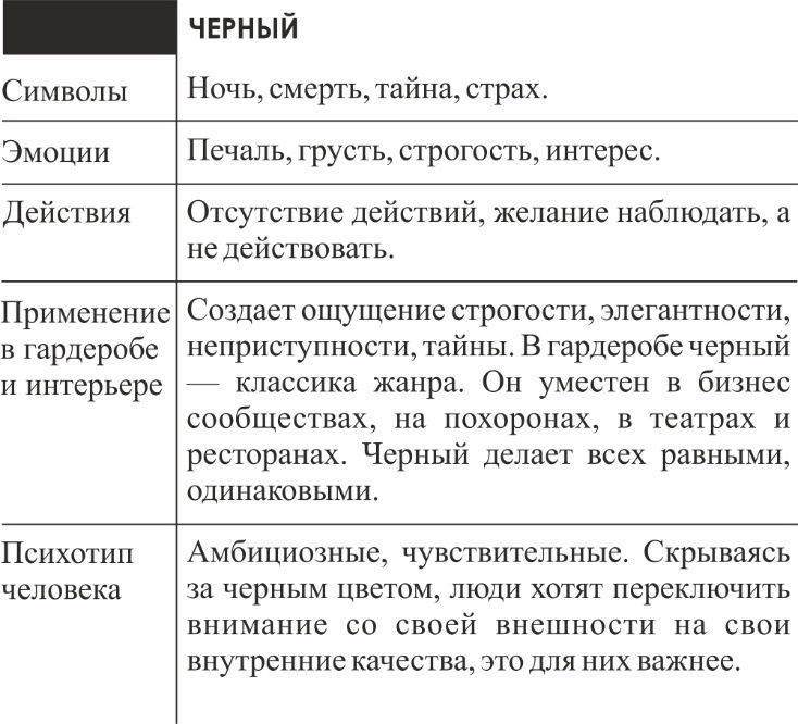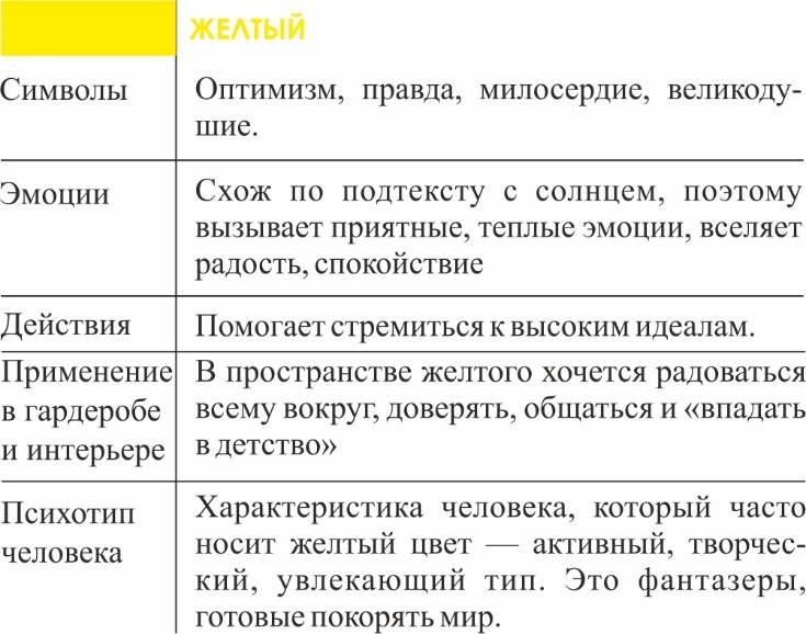 Вслед за Гёте Кандинский соотносил цвета с определенными эмоциями. С ними вы можете ознакомиться в таблице «Психофизические характеристики цвета» на следующих страницах.