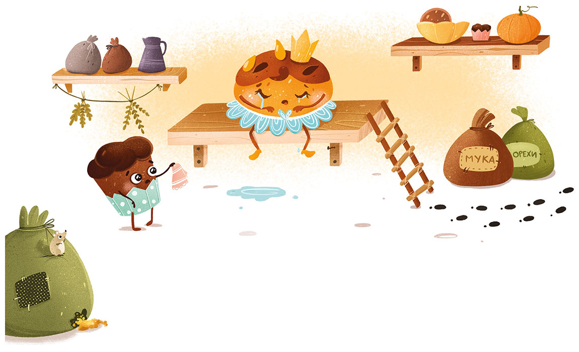 Булочка расплакалась, а бывалый Деревенский хлеб тут же рассказал историю о том, как однажды на ферме от одной коровы убежало молоко. Он знал тысячу историй о деревенской жизни! Легче не стало, но слёзы Булочка вытерла.