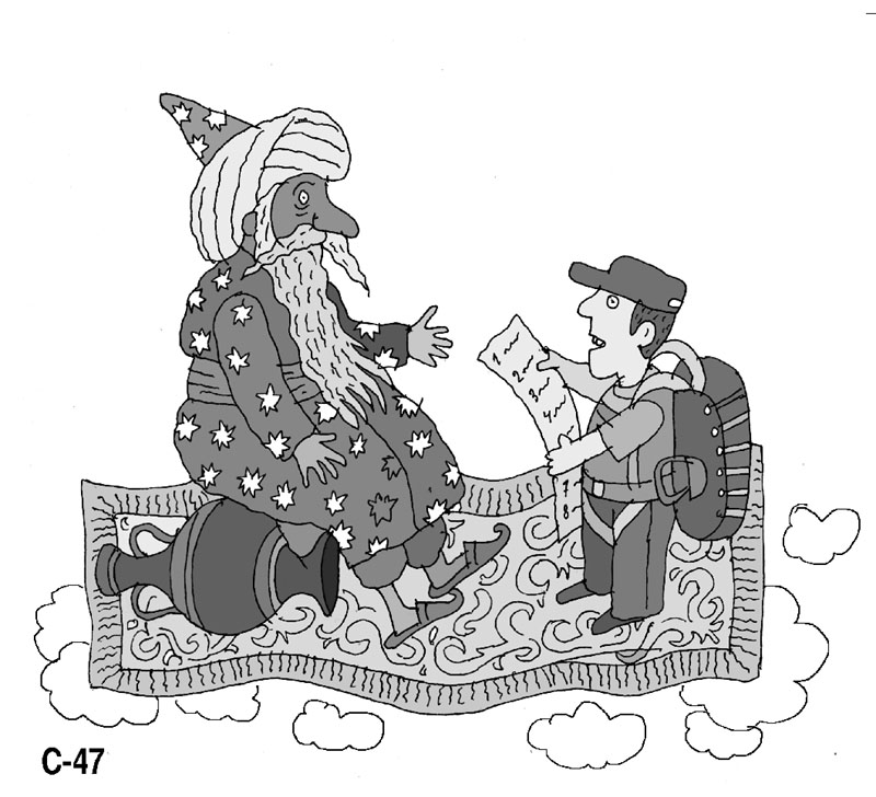 Ползет по пустыне измученный человек. Неделю не пил, три недели не ел. Вдруг видит: старинная лампа. Подполз к лампе, потер. Оттуда вылетел джин и говорит: