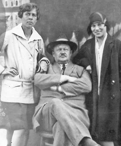 Теннисистки Софья Мальцева, Ольга Ольсен и Адольф Матвеевич Шнейдеров