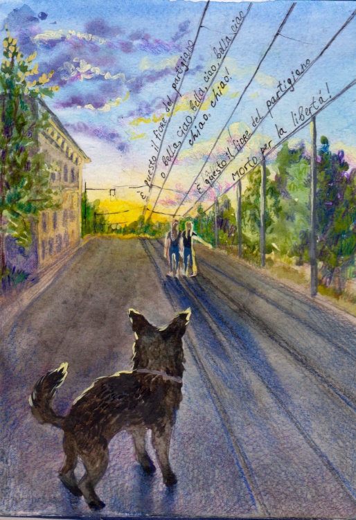В половину пятого утра солнце мало того, что успело вынырнуть из тёмно-синей Невы на бледно-голубое июньское небо, так ещё и начало пригревать. Анатолий Кимович – пенсионер, ветеран труда и коренной житель проспекта Обуховской обороны, вышел на прогулку со своим псом по имени Мурзик. Пока лохматый чёрный двортерьер орошал ближайшее дерево, его хозяин услышал пение – звонкое, на два девичьих голоса. Не самое стройное, но несомненно, прелестное. И песня была знакомая. Пожилой мужчина сначала решил, что ему послышалось, но вскоре явственно различил: «О Белла чао, Белла чао, Белла чао, чао, чао…» Под эту песню он танцевал с будущей женой, которая была тогда ещë студенткой педагогического института. Которая теперь уже два года как лежит в земле. А вот показались и исполнительницы – две девушки, взявшись за руки, шли по трамвайным рельсам. Поравнявшись с внезапным слушателем, они пропели: