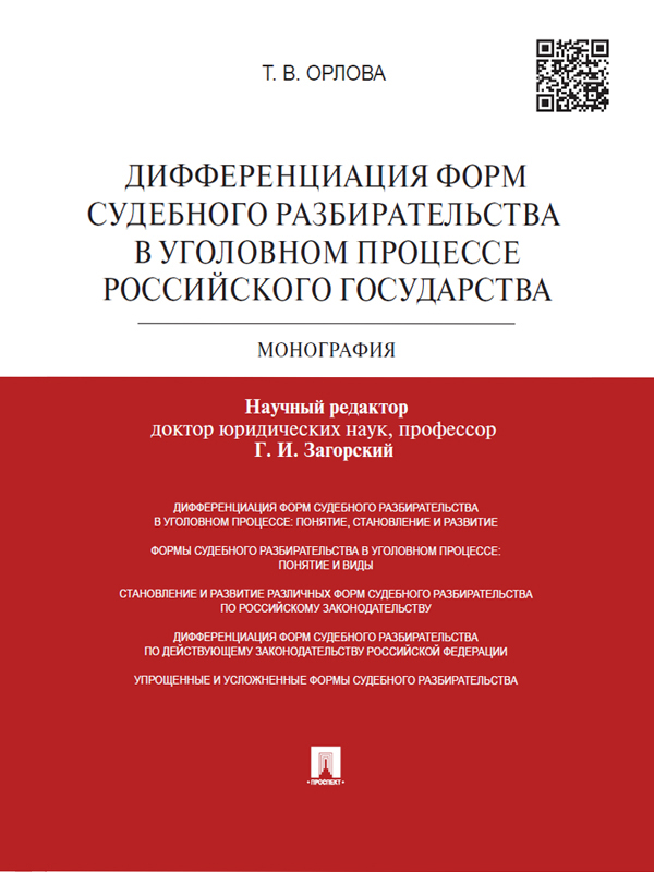 Татьяна Владимировна Орлова Дифференциация форм судебного разбирательства в уголовном процессе Российского государства. Монография