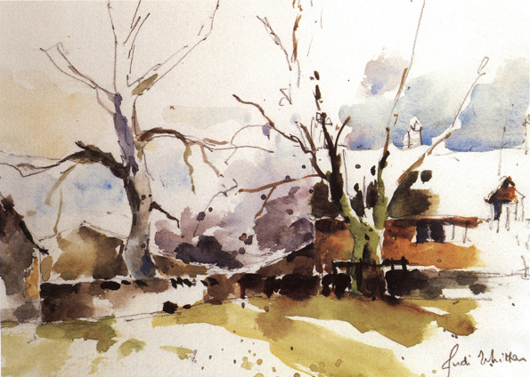 The first question to ask yourself is whether the subject is right for a finished painting. Some people might think that a particular subject is ideal for a sketchbook study but there is not enough ‘weight’ in it for a finished painting. The magical thing about being an artist is that there are no rules. The illustrations here show the sketch and final painting of a winter scene. I framed it like this because I felt I had finished it, even though there was not a great deal of content. I did not really have any more to say and hoped I had caught the essence of the subject. But what was most important was that this picture still had the ‘sketchbook feeling’ about it.