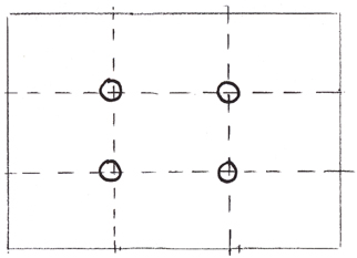 Divide the paper or canvas into thirds, vertically and horizontally. Where the lines cross, these are the ‘eyes’ of the rectangle, perfect spots on which to position a focal point or area. My diagram shows all four, but you would only use one, ideally, for your main focal point.