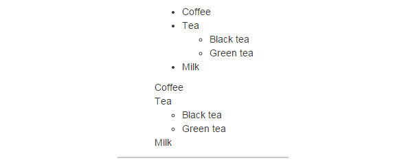 Класс class=«list-inline» выводит список в одну строку: