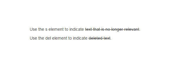 text that is no longer relevant.Use the del element to indicate