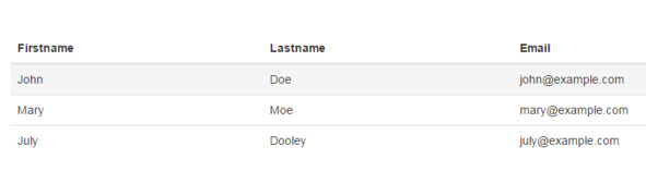 Дополнительно класс class=«table table-striped» добавляет чередующуюся смену фона строк таблицы.