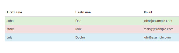 С помощью классов success, danger, info, active, warning можно выделять цветом строки таблицы.